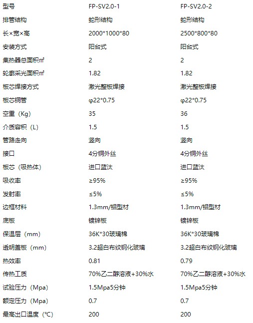 高溫蛇形管集熱器參數: