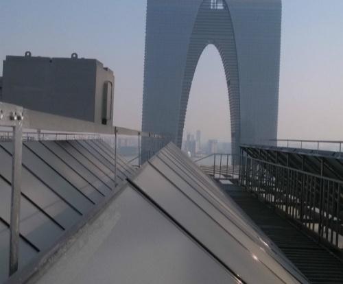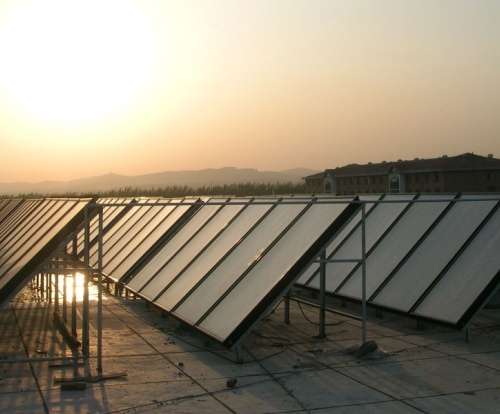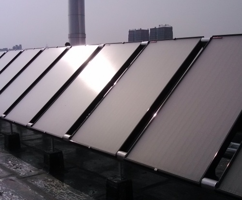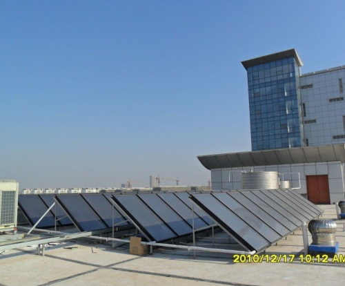 平板太陽能集中供水系統,集熱器一般采用集中陳列型布置,不僅充分利用集熱空間,也有效降低投資及運行成本,同時節約能耗,減少排放。是節能、環保的理想產品。廣泛應用于賓館、醫院、工廠、辦公、游泳池、學生公寓等熱水需求較大的場所。